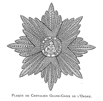 Artikel 25 - Die Grade, in die sich der Orden teilt sind drei: Grands-Croix, Commandeurs und Chevaliers. Für die Damen sind die entsprechend den oben genannten Klassen folgende: Damen 1. Klasse, Damen 2. Klasse, Damen 3. Klasse.