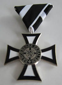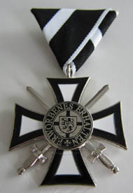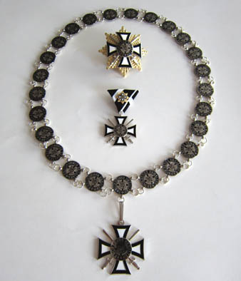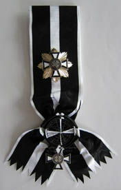 Die Kreuze der jeweiligen Klassen sind in Schwarz und Weiß emailliert. Diese Farben wiederholen sich konsequenter Weiser auch in den Bändern, welche aus drei gleichbreiten Streifen in Schwarz - Weiß - Schwarz bestehen mit schmalen weißen Randstreifen Mit Ausnahme des brillantierten Bruststerns zur Stifterkette, sind alle Bruststerne glattstrahlig ausgeführt. Die Ausführungen mit Schwertern werden an Militärs, Reservisten und angehörige uniformierter Hilfsdienste verliehen (auf Antrag). Die Ausführungen ohne Schwerter an Zivilisten oder angehörige von Hilfsorganisationen. Folgende Stufen werden - jeweils mit und ohne Schwerter - verliehen: