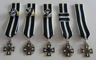 Für alle Klassen des Verdienstordens gibt es auch Miniaturen in 10 mm Größe an einem Miniaturband von 12 mm Breite. Für Zivilpersonen gibt es Ausführungen mit Pin und Clips für den Revers des zivilen Anzugs, sowie Auflagen für die Bandschnallen bei Uniformträgern.