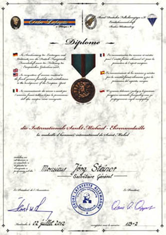 Seit dem 29. September 2011 verleiht der Ordre Lafayette en Allemagne e.V. und der Bund Deutscher Fallschirmspringer e.V. Landeskameradschaft Baden-Württemberg die einstufige "Internationale Sankt Michael - Ehrenmedaille" für besondere Verdienste um die Deutsch-Französische Freundschaft und die Förderung des Gedankens eines vereinten Europas.
