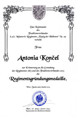 Im Jahre 2013 stiftete das Kommando des neugegründeten Traditionsverbandes k.u.k. Infanterie Regiment "König der Hellenen" Nr. 99 die sogenannte Regimentsgründungsmedaille.