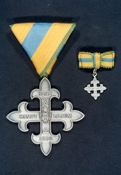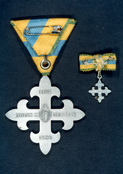 Ehrenkreuz mit Miniatur - Vorderseite | Ehrenkreuz mit Miniatur - Rückseite | Verleihungsurkunde zum Ehrenkreuz in Silber |