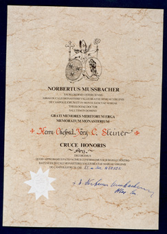 Jörg C. Steiner; Der Dank des Abtes - in: Orden und Ehrenzeichen, 25 Jahre B.D.O.S. Jahrbuch; Berlin 1999 |