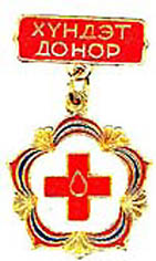 Honorary Blood Donor Badge Diese Auszeichnung kann von Personen erworben werden, die freiwillig und unbezahlt mindestens 20 Liter Blut für das MRK gespendet haben. Nachdem üblicherweise pro Blutspende 0,5 Liter Blut abgenommen werden, ist diese Auszeichnung also nach der 40sten Blutspende zu erwarten. |
