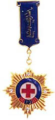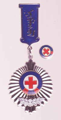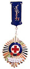 Honorary Badge Mit dieser Auszeichnung können leitende Mitarbeiter des Mongolischen Roten Kreuzes, sowie solche befreundeter Organisationen und des internationalen Komitees vom roten Kreuz beliehen werden. In jedem Falle sind außerordentliche Verdienste um die Ziele des Mongolischen Roten Kreuzes oder der international anerkannten Projekte der Rot Kreuz oder Roter Halbmond Organisationen. |