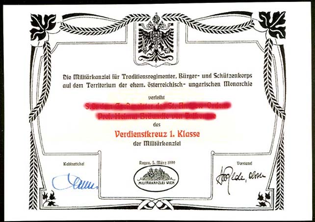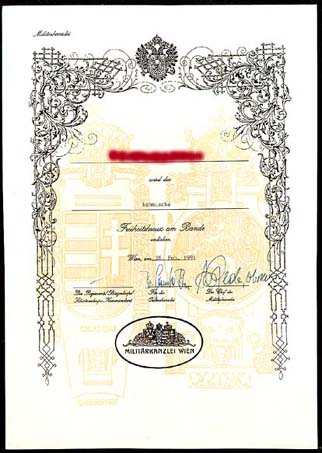 Ungarisches und Böhmisches Freiheitskreuz | Verleihungsurkunde |
