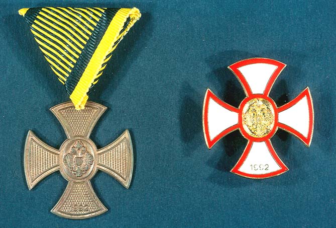- 2.Klasse - ein bronzenes Prankenkreuz mit einem österreichisch-ungarischen Doppeladler im ovalen Mittelmedaillon und dem Stiftungsjahr "1992" im unteren Kreuzarm. Die Rückseite ist nicht gestaltet und es wird an einem schwarz-gelb gerippten Dreiecksband an der linken Brustseite getragen. Die Kreuze der 2.Klasse können an alle Personen, unabhängig von ihrem Rang, verliehen werden, die sich um den Auf- bzw. Ausbau von Traditionseinheiten verdient gemacht haben. Bis Mai 2000 wurden rund 50 Stück verliehen.