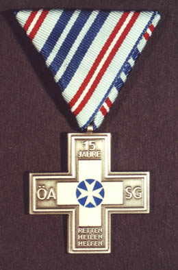 Anläßlich des 15-jährigen Bestehens und dem Jahr 2000 stiftete die ÖASG zur Erinnerung für alle Mitglieder, Förderer und Freunde ein silbernes Kreuz, Jubiläumskreuz 2000 oder auch Milleniumskreuz genannt. In der Mitte das weiß und blau emaillierte Ehrenzeichen der ÖASG und daneben in den Kreuzarmen oben "15 Jahre", unten dreizeilig "Retten-Heilen-Helfen" sowie recht "ÖA" und linke "SG", die Rückseite ist glatt. Das 40mm breite hellblaue Band hat drei gleichbreite dunkelblaue Mittelstreifen und rot-weiß-rote Seitenstreifen. Auf besonderen Wunsch und gegen entsprechendem Aufpreis konnte das Kreuz auch in echt Silber (punziert) erworben werden.