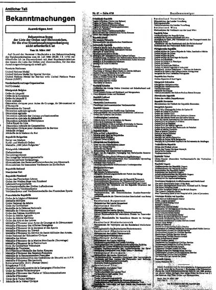 Verleihungsurkunde für ein Großkreuz aus dem Jahre 1988 |