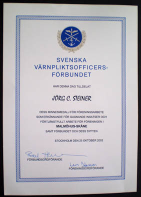 Erinnerungsmedaille 2003 - Vorderseite | Verleihungsurkunde |