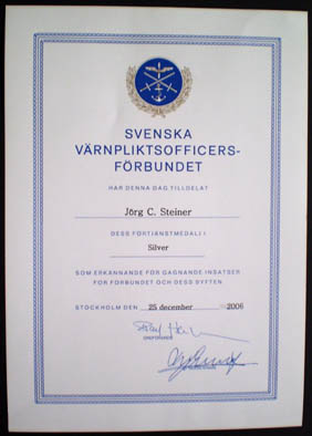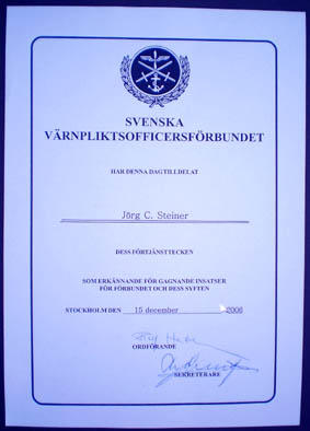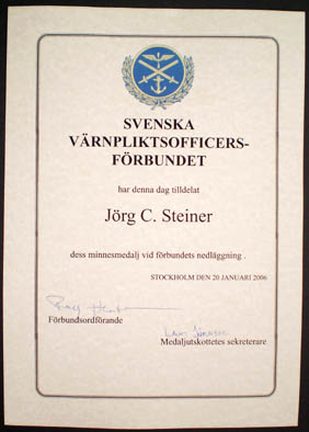 Erinnerungsmedaille 2006 - Vorderseite | Erinnerungsmedaille 2006 - Rückseite | Verleihungsurkunde |