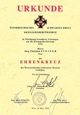 | Ernst Gerhartl; Die Auszeichnungen des Österreichischen Schwarzen Kreuzes - Kriegsgräberfürsorge; in: OuE Jahrbuch 2001 |