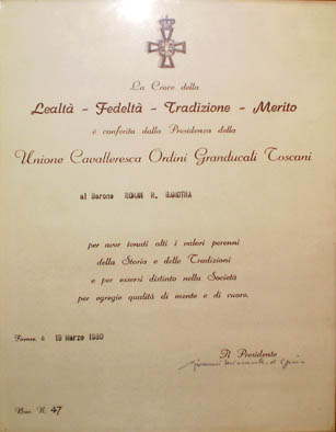 | Urkunde mit Nr.47 aus dem Jahre 1980 | Erzherzog Gottfried Großherzog der Toskana |